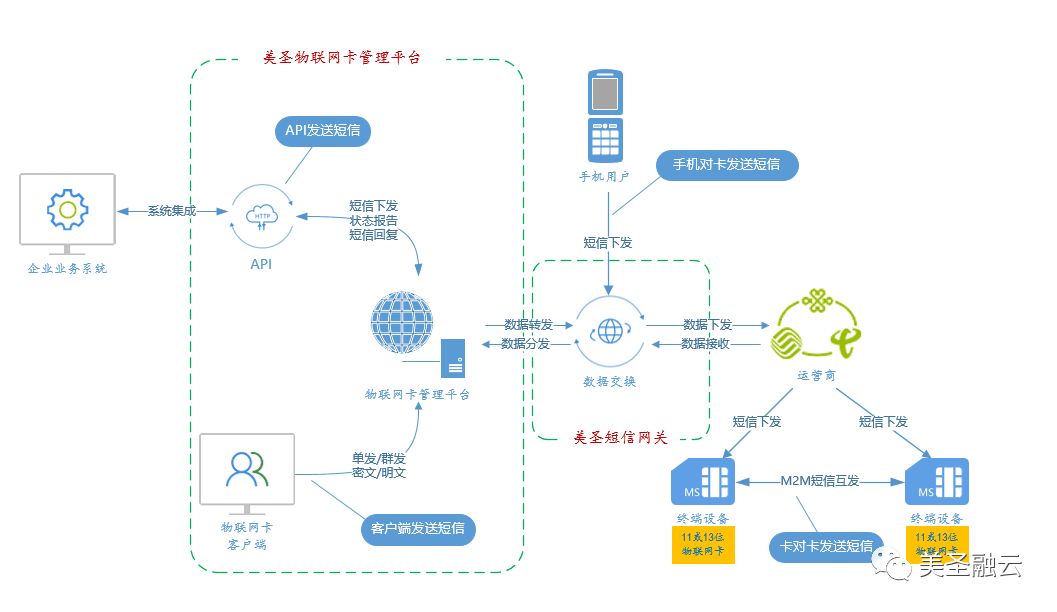 2、API—卡:通过美圣物联网卡管理平台开放的接口发送;